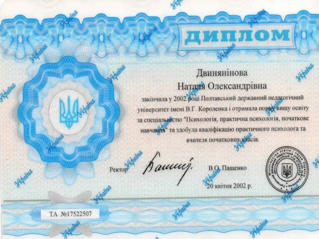 высшее, Полтавский государственный педагогический институт им. В.Г.Короленко, 2002г.